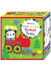 This soft cloth, concertina cot book is stuffed for extra squishiness, perfect for little babies to play with. The wordless pages are full of friendly animals waiting at the station and riding the brightly-coloured train. There are short ties to attach the book to a cot or baby gym, and a keepsake box too. A wonderful present for a new arrival.