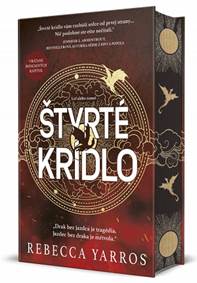 Violet Sorrengailová sa celý život pripravovala na prácu pisárky, ale jej matka ju proti svojej vôli prihlási do Jazdeckého kvadrantu stať sa jazdkyňou. Pre slabého a krehkého človeka ako ona to však nie je vhodné miesto a musí si ľstivo poradiť s nejednou náročnou úlohou... V knihe sa nachádzajú: vzťah medzi synom separatistu a dcérou generálky (z nepriateľov milenci), tajomstvá, vojenská škola a výcvik, dračí jazdci (zväzky a prepojenia s drakmi), mágia, nebezpečenstvo, napätie, odhalenia, zvraty, intrigy, new adult. Štvrté krídlo je prvý diel pentalógie Empyreum. Najlepší v knihe boli draci. Po príchode drakov na scénu v druhej tretine bola kniha zrazu omnoho lepšia. Tairn je jeden veľký drak hundroš, ktorého si nejde neobľúbiť! Výborn boli aj mentálne rozhovory prepojených, čo sú niečo podobné ako četovanie v súčasných románoch, ale ešte lepšie a zábavnejšie! Vždy som sa potešila, keď som videla, že nasleduje text s kurzívou. Na začiatku každej kapitoly máme úryvky z rôznych fiktívnych diel, ktoré sú zaujímavým spestrením a navnadia čitateľa na nasledujúcu kapitolu. V knihe mi chýbali vysvetlenia mágie, sveta a ešte ďalších vecí, mám niekoľko otázok „Prečo...“ a „Ako...“, ale verím, že to všetko ešte len bude témou nasledujúcich častí série, autorka ich ešte má naplánovaných dosť. Teraz už chápem, prečo si dnešní tínedžeri zamilovali túto sériu podobne ako my dávnejšie Dvory, Trón, Hry o život, Divergenciu, Súmrak, Grišu či Upírsku akadémiu. Je to rovnako návyková fantasy, ktorá má všetko, o čom chceme v tom veku čítať, a vzbudí vo vás závislosť a fanúšikovské nadšenie a všetko s tým spojené...