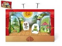 Pohádky s Krtečkem a jeho kamarády si teď můžete zahrát s loutkovým divadlem. Divadélko obsahuje vysekávané papírové loutky na vodícím drátu, kulisy interiérů, i exteriéru.