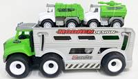 Ťahač s autami 31cmParádne ťahacie auto s 3 pracovnými autami. Ťahač jazdí na voľný pohon a pracovné autá na zotrvačník. Veľkosť ťahača: 31 x 11 x 12 cmVeľkosť autíčok: 10 x 4,5 x 5 cm (od druhu)Pevný plastVhodné od 3+